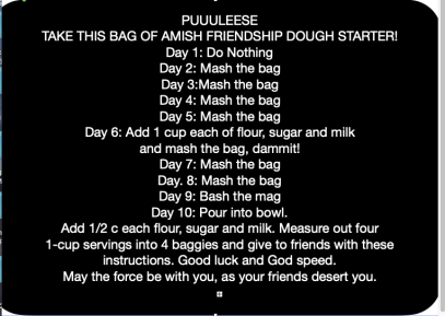 Friends don’t let friends give other friends Amish Friendship Bread Starter.